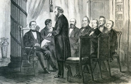 Johnson announced to his presidential cabinet that “we could not, with proper self-respect, witness the inauguration of a man whom we knew to be untruthful, faithless and false.” But the rest of his cabinet did not feel the same way as many were supporters of Lincoln and wanted to be in attendance for the inauguration. After further discussion with his cabinet, Johnson had a change of heart and decided to attend the inauguration. One of his cabinet members, Navy Secretary Gideon Welles was not happy with his decision and complained saying “so we are likely to form part of the pageant — be a tail to the Grant kite.”