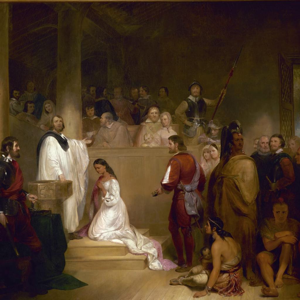 For a while, Pochahontas had stayed clear of the European colonists, marrying her first husband, Kocoum. In the Disney movie, Pochahontas has to choose between Kocoum (a fellow Powahatan) and John Smith, a European colonist. In the movie she chooses Smith, but in real life she chose Kocoum. In 1613, Pochahontas was then taken prisoner by the English during the First Anglo-Powhatan War. While held at Henricus, a part of the original settlement of Jamestown, Pochahontas worked on her English and learned about Christianity. She would later become baptized into Christianity as Rebecca. In 1614, the colonists allowed Pocahontas to talk to her father Powahatan, and she reportedly rebuked him for valuing her “less than old swords, pieces, or axes”. She said that she preferred to live with the colonists “who loved her”.